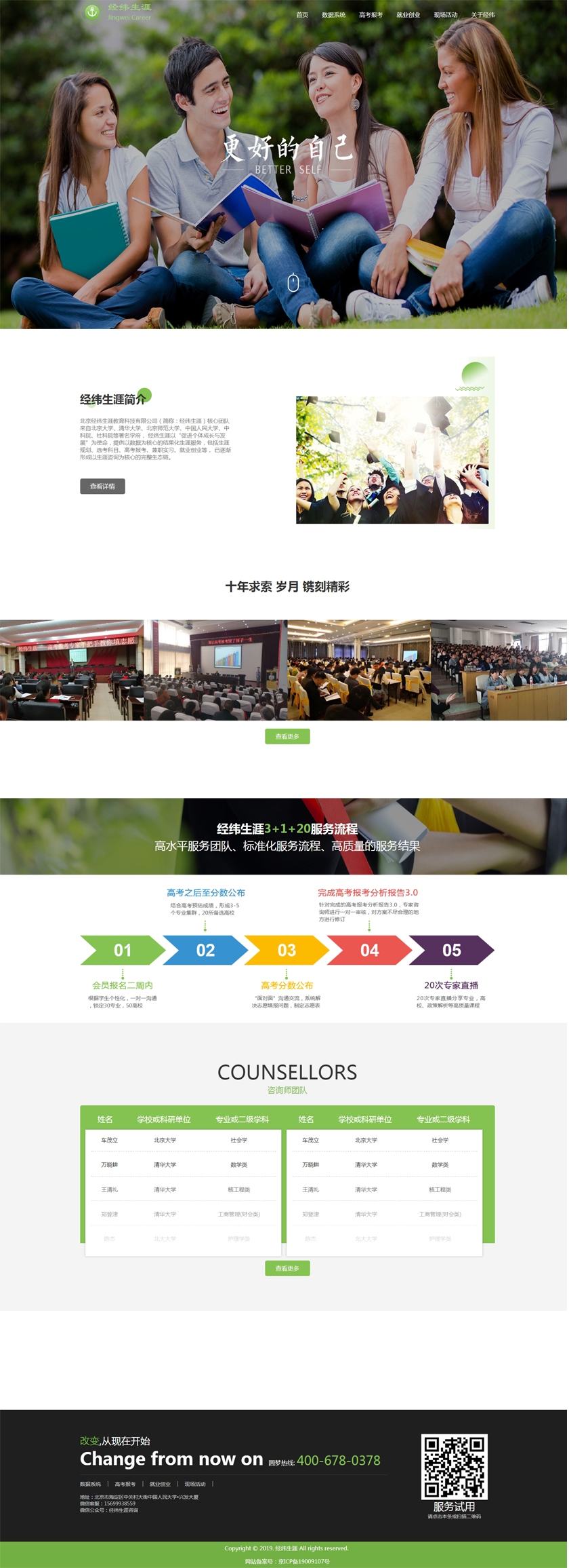 Project Description 北京经纬生涯教育科技有限公司(简称:经纬生涯)核心团队来自北京大学、清华大学、北京师范大学、中国人民大学、中科院、社科院等著名学府, 经纬生涯以“促进个体成长与发展”为使命,提供以数据为核心的结果化生涯服务,包括生涯规划、选考科目、高考报考、兼职实习、就业创业等, 已逐渐形成以生涯咨询为核心的完整生态链。 Official website address 江西http://www.jingweishengya.com/ I want to share