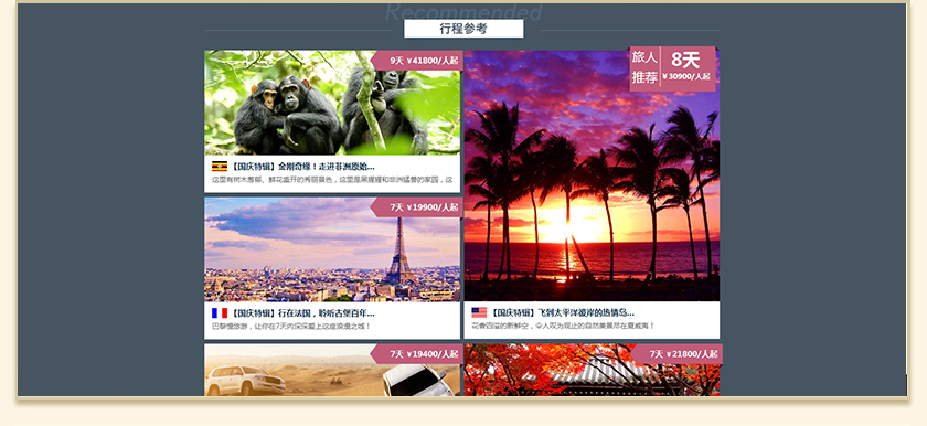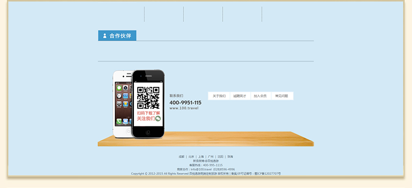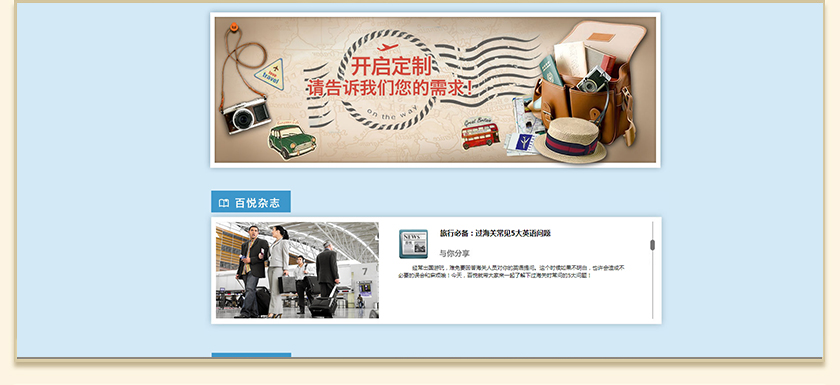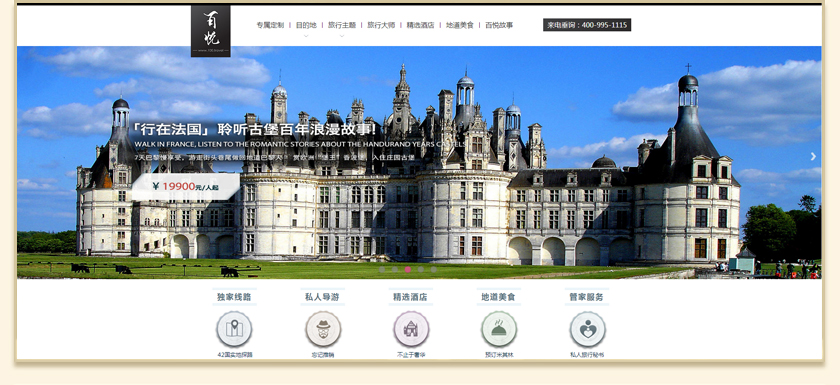 Project Description 百悦逸游于2012年初由二位资深的旅行家创办,是成都传媒集团旗下成都新闻国际旅行社有限公司的高端旅游品牌,总部位于成都高新区天府大道中段美年广场。在百悦逸游成立之前,创始团队亲自到全球三十多个国家实地考察,带着第一手的资讯和执着的信念创立了中国西部第一家真正意义上的私人定制旅行机构。百悦的旅行不是跟团挤大巴,不是十天去十个国家,更不是没完没了的... Official website address 江西http://www.100.travel I want to share